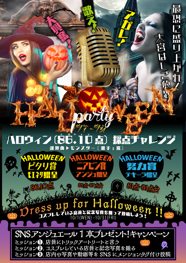 「ハロウィン🎃カラオケ採点チャレンジ」KARAOKE HUNDRED 大宮東口店で開催決定!